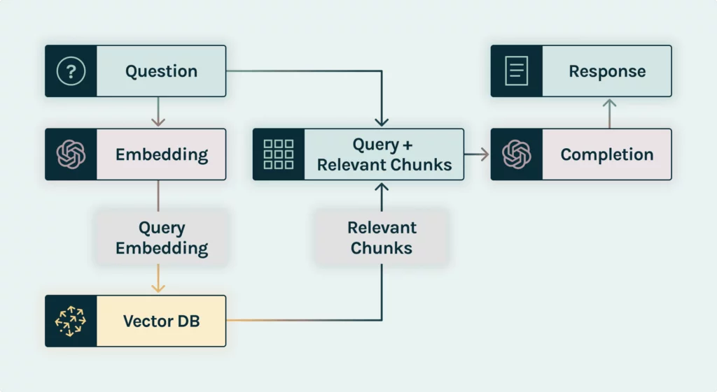 What we will do is use an embedding model (BAAI/bge-large-en-v1.5 in our case because it is very good model that I can run on my GPU) to convert all of the text chunks into vectors (a fixed length array of numbers, essentially). What is cool about these embedding models is that they were trained on massive amounts to text to create similar vectors for similar text. So if two pieces of text are similar, then the difference or distance between their vectors should be small and we can assume they contain the same information. This is the crux of the retrieval step in RAG. We will exploit this to find the most similar text chunks from our library with our search query. There are lots of tutorials out there on embeddings, but one I really like is from Lena Voita's NLP Course For You (it helps to have a little math background).